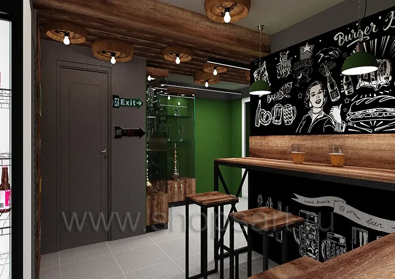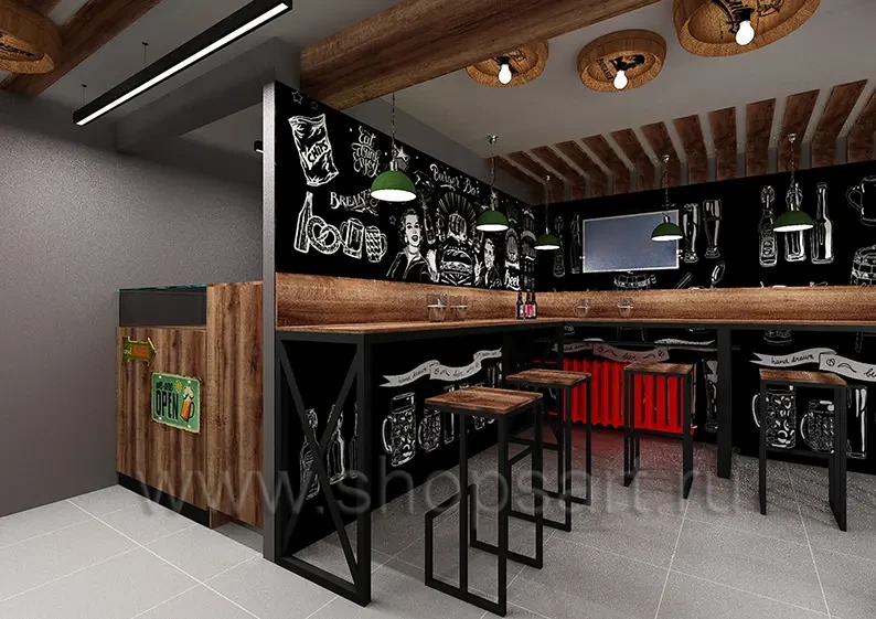 Дизайн интерьера бара За пивом и за дымом Москва коллекция мебели ЛОФТ