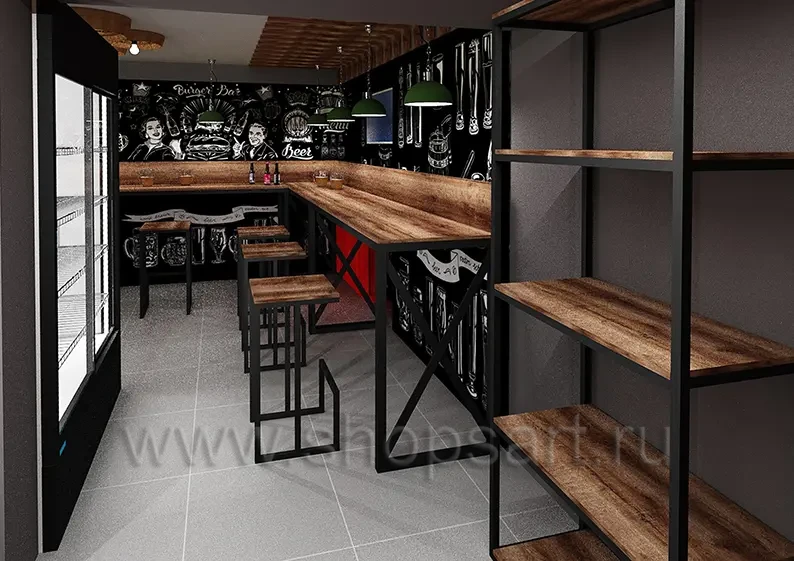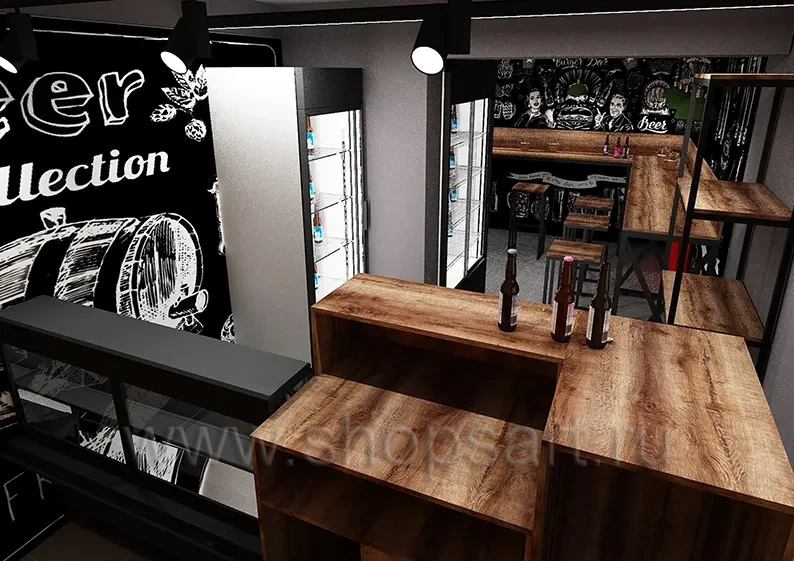 На этой странице Вы можете ознакомиться с дизайном бара “За пивом и за дымом”, находящегося в городе Москве, Измайловский проезд, дом 5/1, корпус 4, на основе коллекции торгового оборудования “ЛОФТ”. Разработала дизайн помещения и дизайн мебели компания “Искусство интерьеров”. Разработаем для Вас дизайн кафе, дизайн ресторана, дизайн бара, дизайн кофейни и других точек питания. Узнать больше о наших коллекциях мебели для магазинов и бизнеса Вы можете на странице торгового оборудования для магазинов и бизнеса.