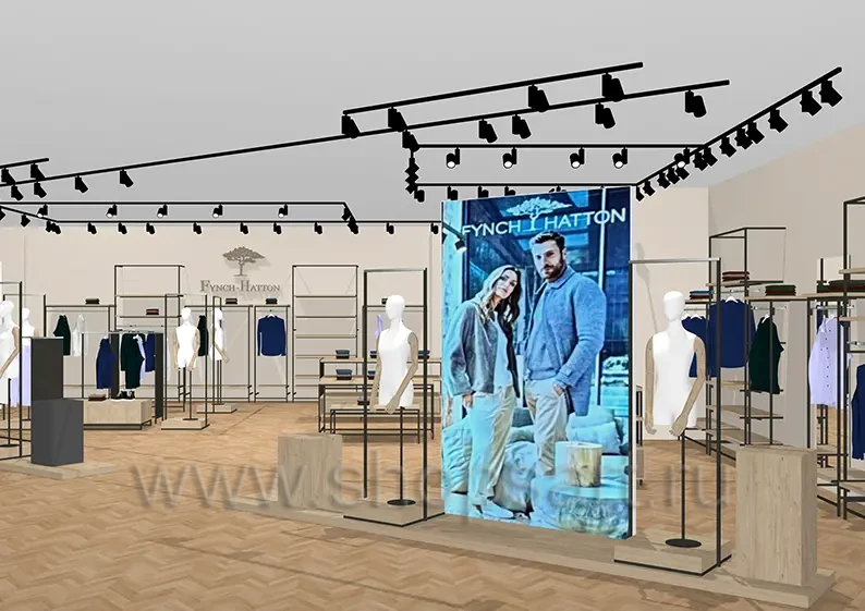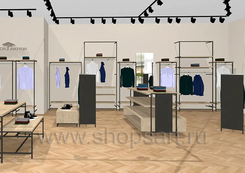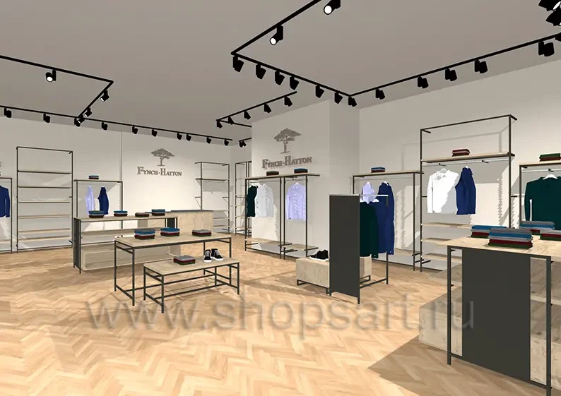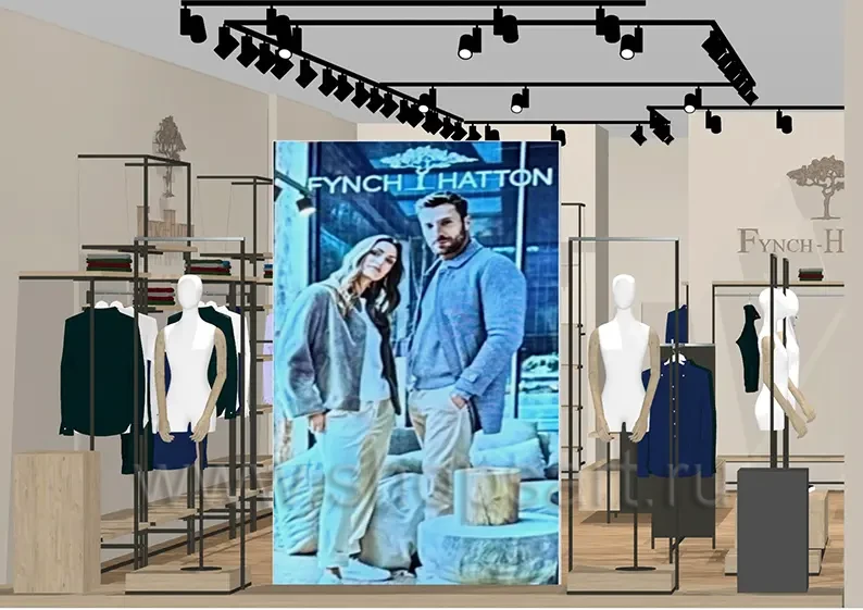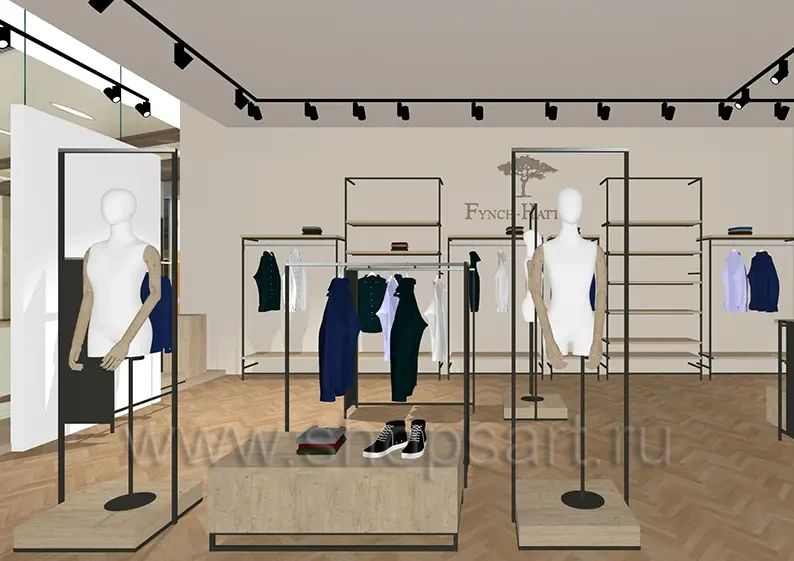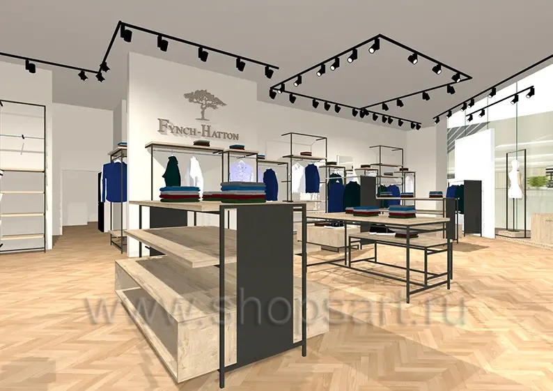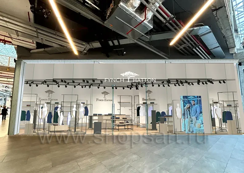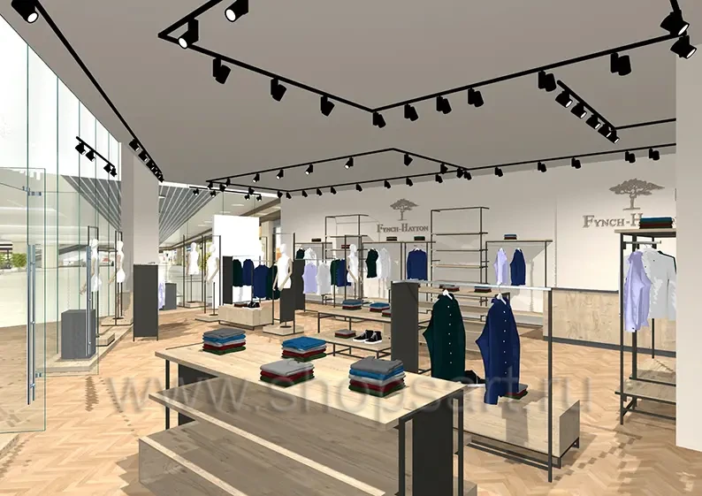 Дизайн интерьера магазина одежды FUNCH HATTON в ТРК ЕВРОПОЛИС торговое оборудование ПРЕСТИЖ