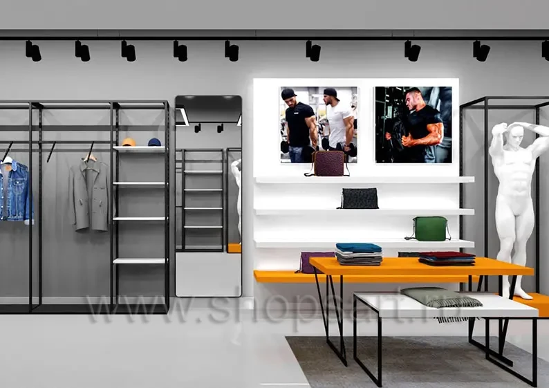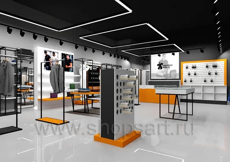 Торговое оборудование для магазинов спортивной одежды на основе коллекции АТЛАНТ