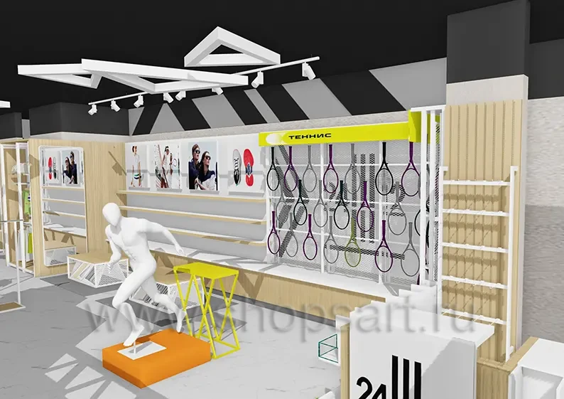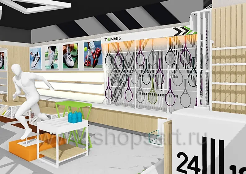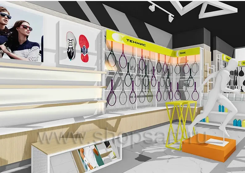 Дизайн интерьера спортивного магазина коллекция торгового оборудования АТЛАНТ