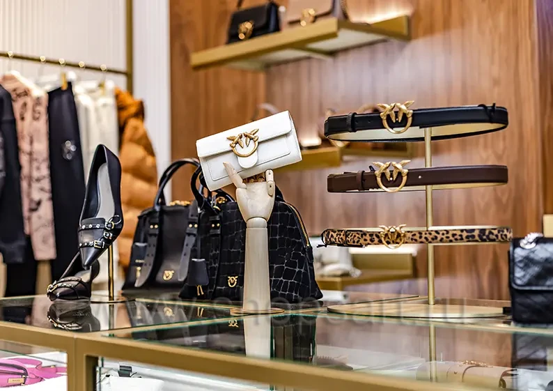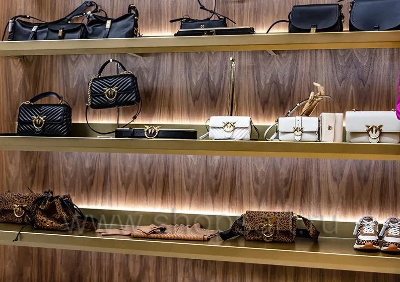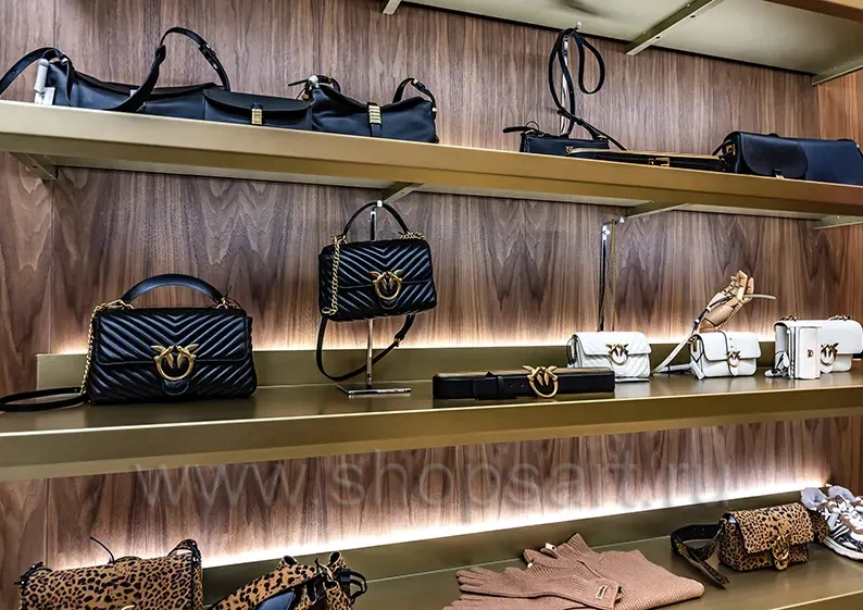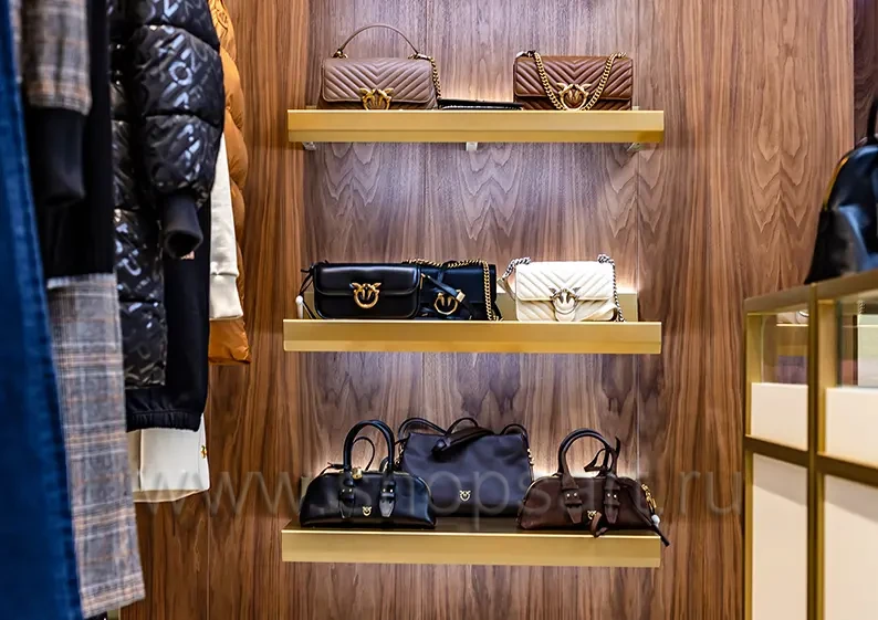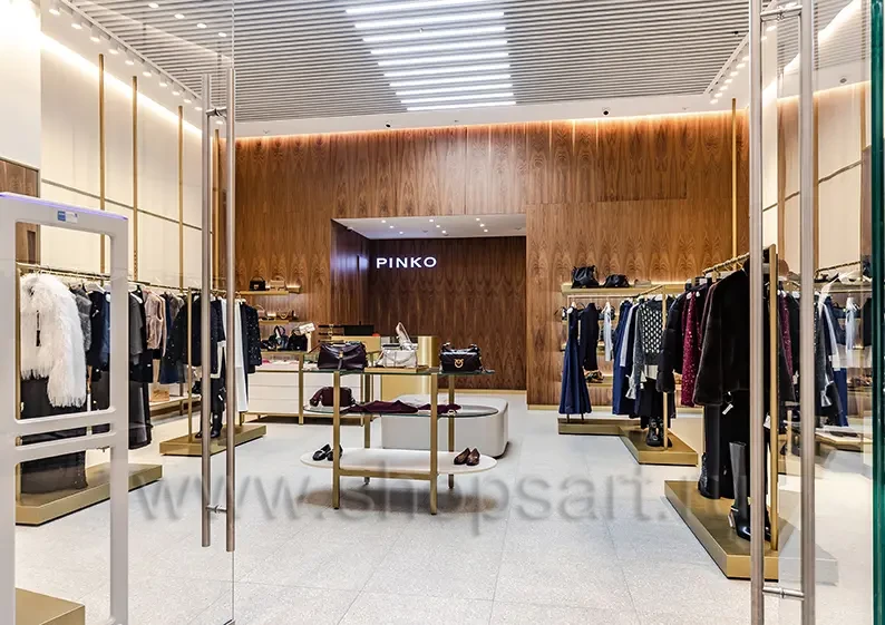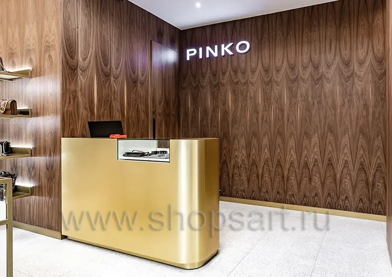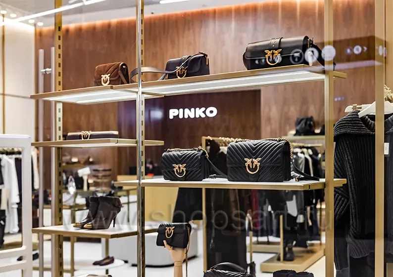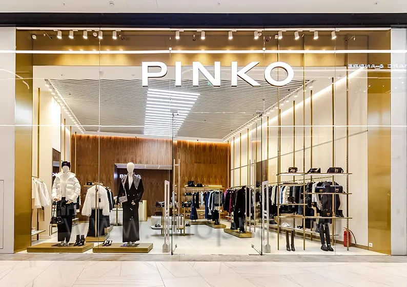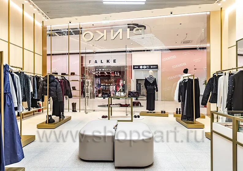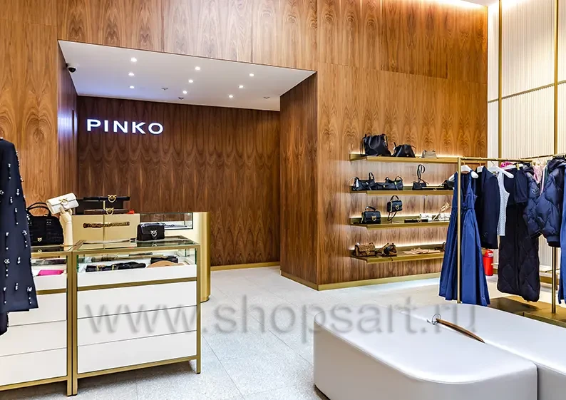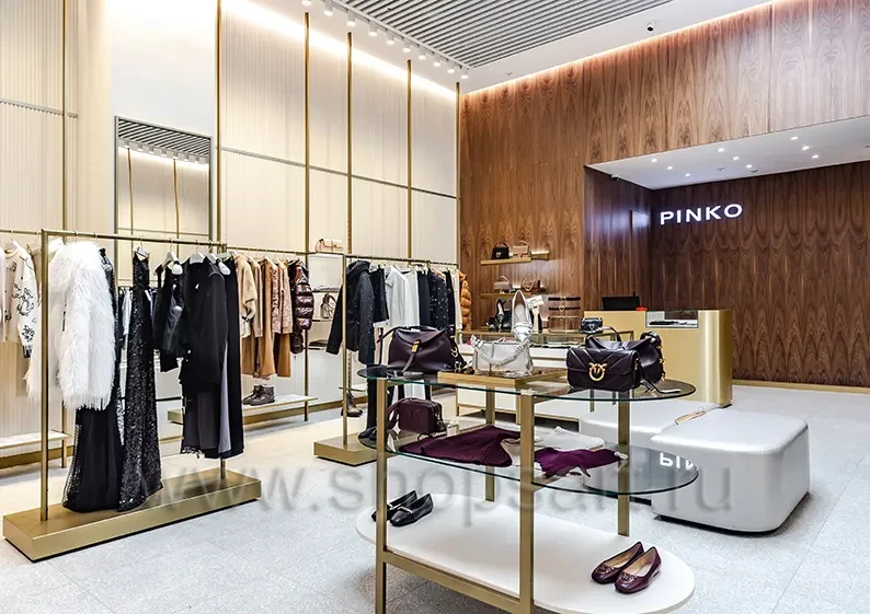 Фотографии торгового оборудования магазина одежды PINKO ТРЦ Голливуд коллекция ЗОЛОТАЯ ЛИНИЯ