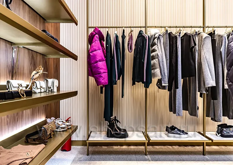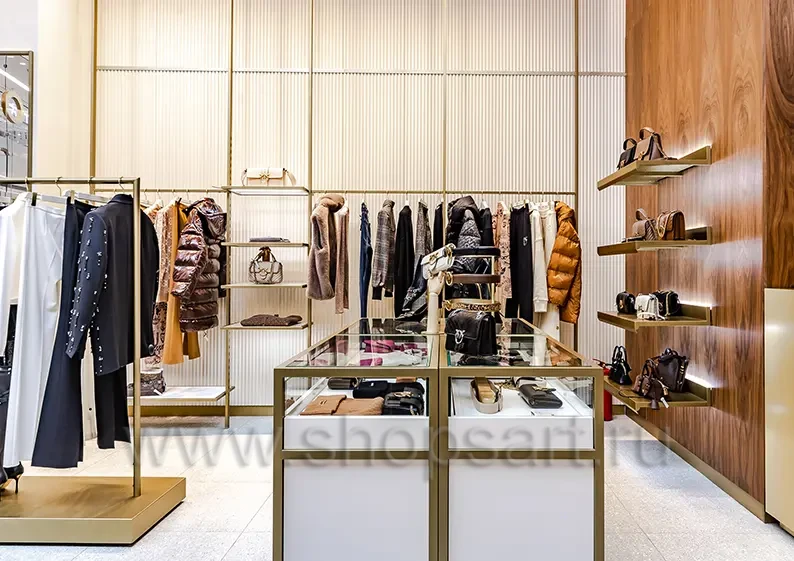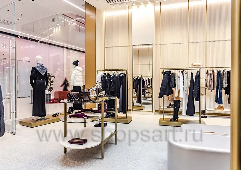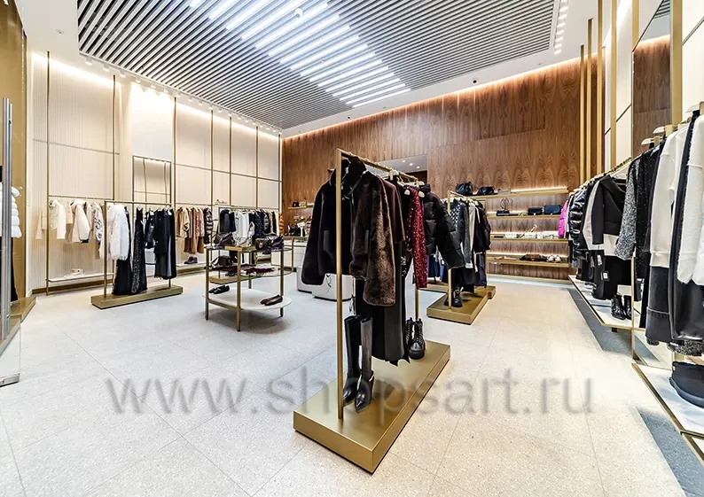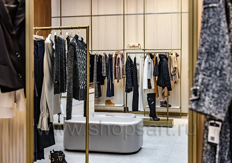 Дизайн интерьера магазинов одежды на основе коллекции торгового оборудования ЗОЛОТАЯ ЛИНИЯ