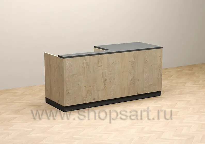 Кассовый стол это необходимое торговое оборудование в магазинах, применяемое для оформления рабочего места продавца или кассира. Данная модель кассового стола выполнена из комбинированных цветов матового ЛДСП 16 мм: «Дуб Приморский сатиновый» K081 PW «Кроношпан» и серого. Столешница и боковые стенки выполнены из ЛДСП 32 мм.